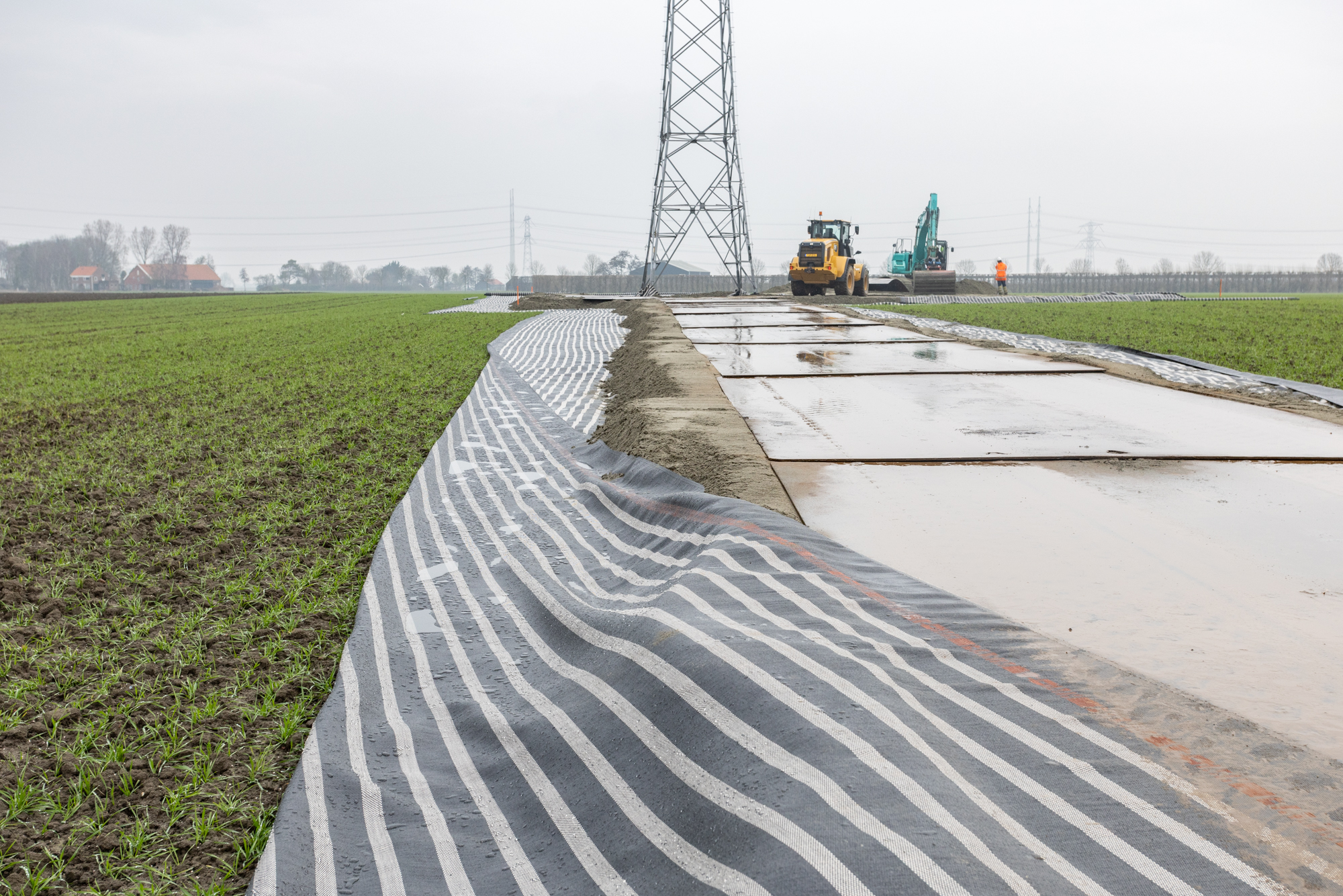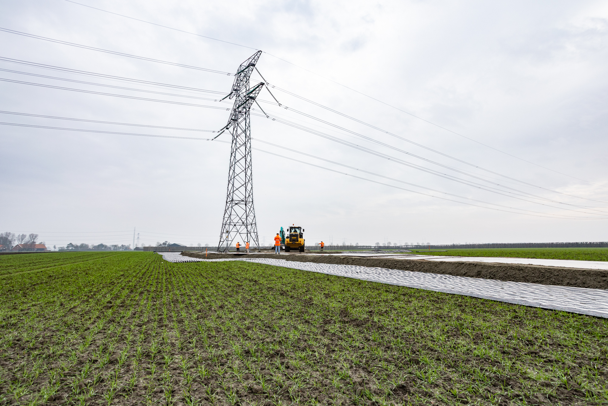 De masten staan vaak midden in het weiland, onbereikbaar voor het benodigde materieel. Daarnaast is de ondergrond niet draagkrachtig genoeg om de druk van de hijskraan op te weerstaan. Om de landbouwgrond te beschermen en de draagkracht te verbeteren legt aannemer Dusseldorp tijdelijke werkwegen en aansluitende kraanopstelplaatsen aan.