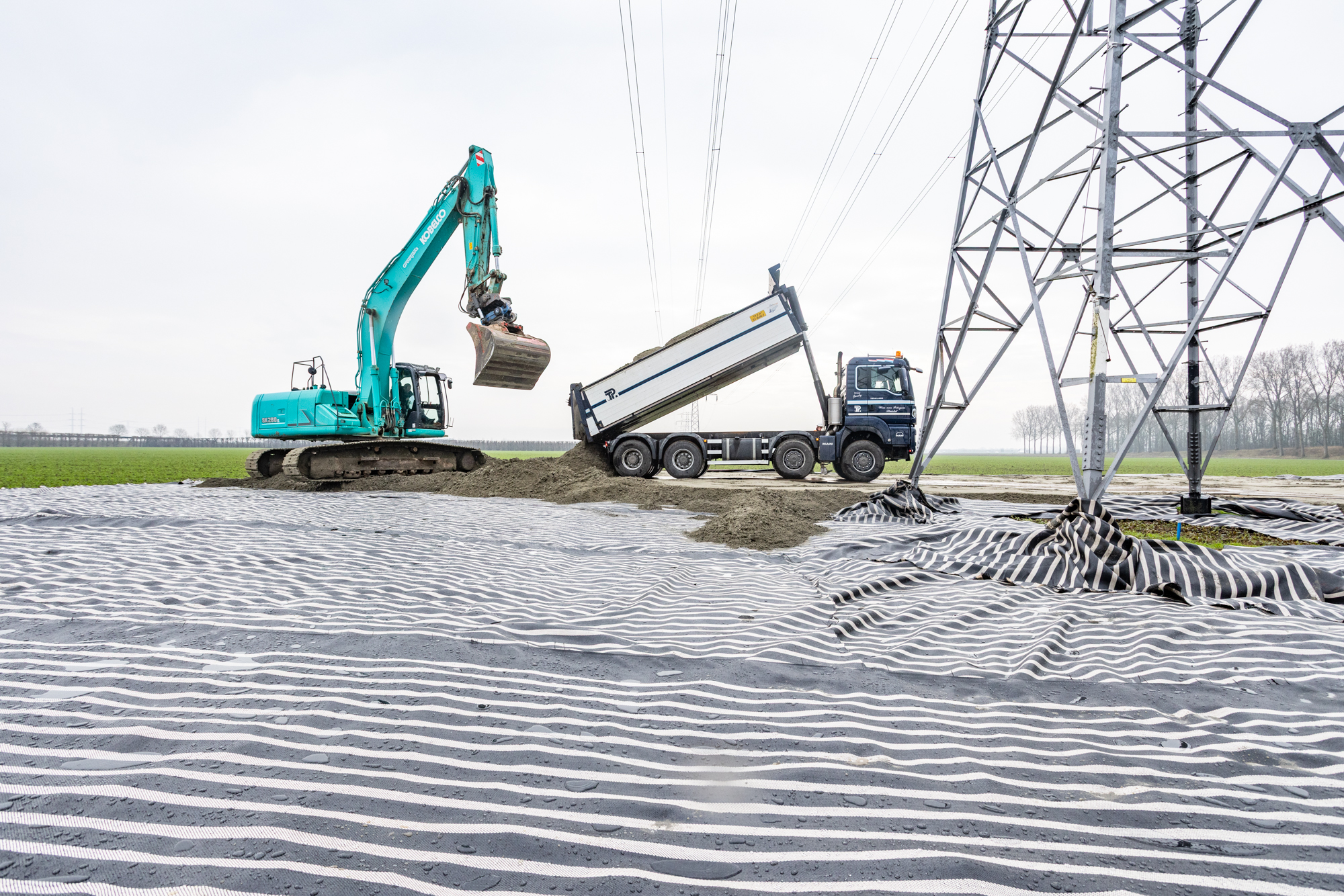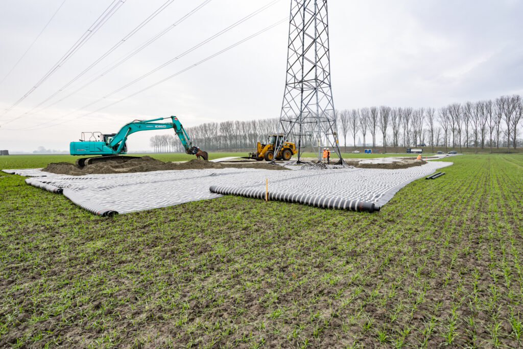 Zeeland vervult een steeds belangrijkere rol in het Nederlandse energiesysteem. Met plannen voor nieuwe energiecentrales gen grootschalige duurzame opwekking groeit de regio verder uit tot een essentieel energieknooppunt. De vraag naar elektriciteit stijgt snel terwijl de capaciteit van het huidige elektriciteitsnet achterblijft. Daarom heeft TenneT een nieuwe hoogspanningsverbinding tussen Borssele en Rilland gerealiseerd welke in juni 2025 in gebruik is genomen. Daardoor kunnen 104 verouderde vakwerkmasten worden verwijderd. Voor deze operatie worden tijdelijke werkwegen en kraanopstelplaatsen aangelegd met behulp van MARAFI® Geolon HMi-5 geotextiel van Solmax om de ondergrond te versterken en landbouwgrond te beschermen. Nadat de masten zijn verwijderd, wordt de constructie weer afgebroken en wordt het gebruikte geotextiel gerecycled.